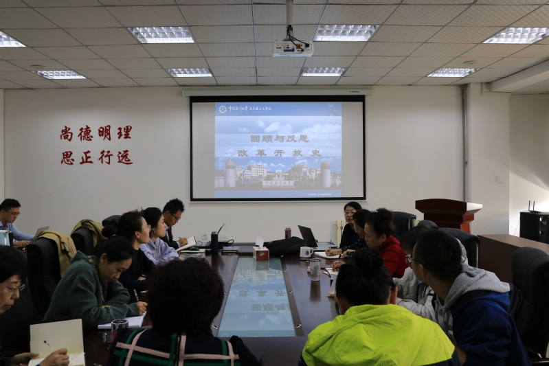 根据《马克思主义学院关于开展党史、新中国史、改革开放史、社会主义发展史学习教育的通知》要求,为深入学习“四史”, 10月22日下午,马克思主义学院教工第一党支部邀请我院中国化马克思主义教研部主任李艳霞教授为支部全体党员教师作题为“回顾与反思:改革开放史”的党课讲座。本次党课学习活动由支部组织委员杨新玉同志主持。