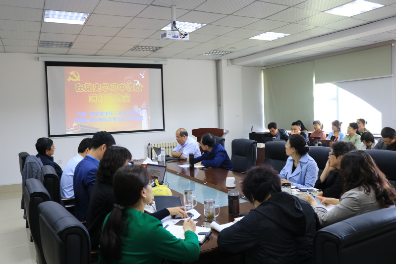 5月13日,马克思主义学院党总支理论学习中心组(扩大)举行专题学习会,邀请中国社会科学院马克思主义研究院中国特色社会主义理论体系研究室主任、习近平新时代中国特色社会主义思想研究中心特约研究员沈阳作“在党史学习中汲取前进的力量”主题报告。学院党总支理论学习中心组成员及全体教职工参加学习,会议由学院党总支书记任玮娜主持。