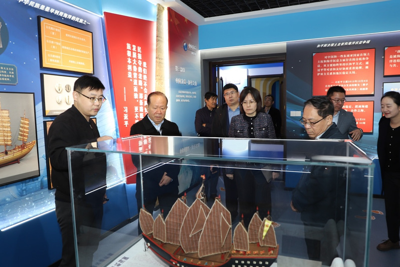 卢光志对海权馆升级改造工作给予充分肯定。他指出,海权馆不仅是服务国家海洋强国建设、提升全民海权意识的重要载体,也是深化爱国主义教育、推动学校海洋特色“大思政课”体系建设的关键平台。他强调,海权馆要持续优化展陈内容、提升讲解服务质量、强化场馆运营管理、拓展馆际交流合作,为学校践行海洋人才培养与海洋权益教育使命提供坚实支撑。