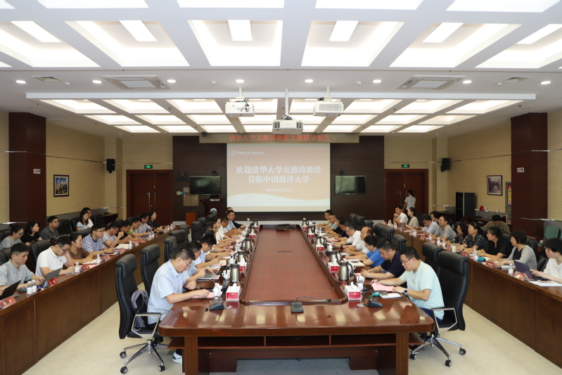 9月2日上午,中国海洋大学召开思政课教师专题辅导报告会,深入贯彻落实习近平总书记给学校全体师生重要回信精神,推动学校思政课建设开创新局面。报告会邀请清华大学首批文科资深教授、中央马克思主义理论研究和建设工程首席专家、教育部高等学校思想政治理论课教学指导委员会主任吴潜涛教授作专题报告。校长张峻峰主持报告会。